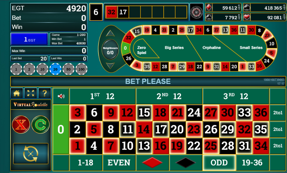 提供兩種輪盤遊戲,均為單零輪盤。虛擬輪盤完全電子化。歐式輪盤遊戲以真實輪盤,每次旋轉間隔時間固定。兩種遊戲都簡單快速。每註的賭場優勢均為 2.70%。
