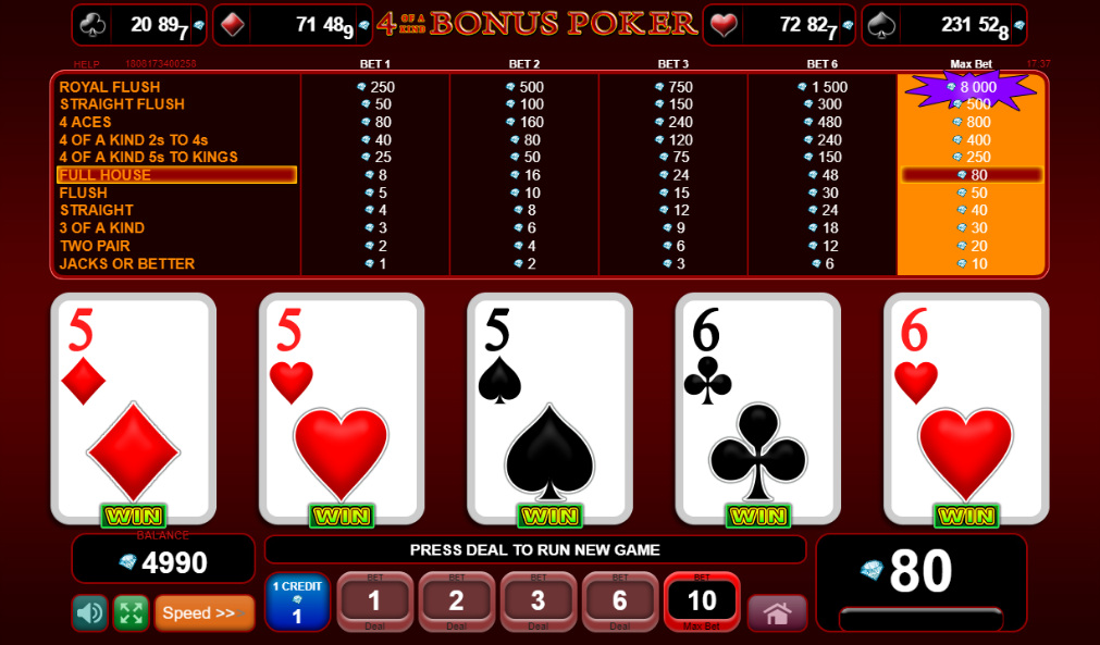 Bonus Poker | 99.17% | 否 | 1-2-3-4-5-8-25-40-80-50-800 | 否 |