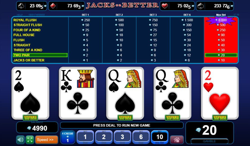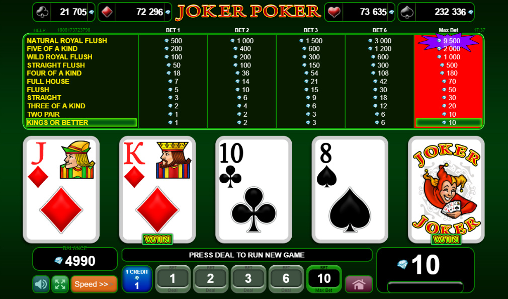 採訪時,這三款視訊撲克遊戲都相當簡單。我必須用視訊撲克分析儀來計算Joker Poker遊戲的回報,如果是皇家同花順,每注硬幣的賠率為950(基於10個硬幣的投注)。