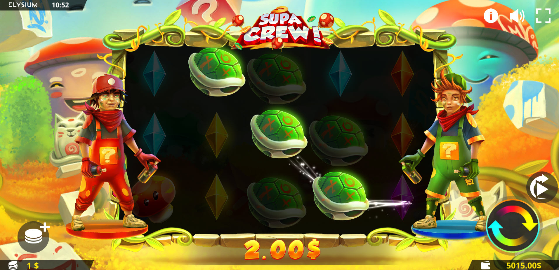 - Supa Crew(超級船員)- 這款五捲軸遊戲有很多「硬幣」符號,翻轉後會顯示一個隨機符號。如果玩家在同一次旋轉中獲得多個硬幣,它們都會翻轉成同一個符號。此外,還有超級硬幣,它會在螢幕上用硬幣覆蓋一個 3x3 的方格。此外,還有 2x2 乘數符號,可隨機支付獎金。最後,還有 Supa Crew Bothers,它會將一些失敗的符號轉換為獲勝的符號。