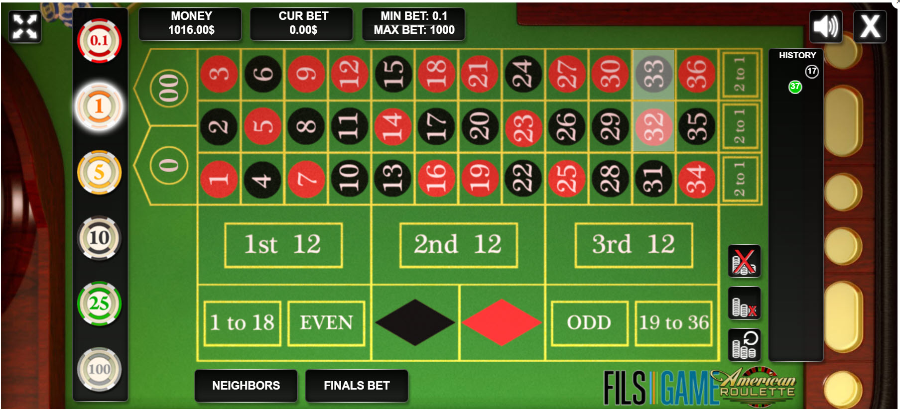 玩美式輪盤賭時,球落在零上,但在歷史螢幕上記錄為 37。