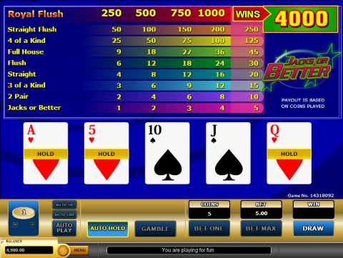 請注意,自動保持功能有時是不正確的,正如 Jacks or Better 中的這手牌所證明的那樣: