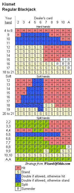 Kismet 單副牌21點規則