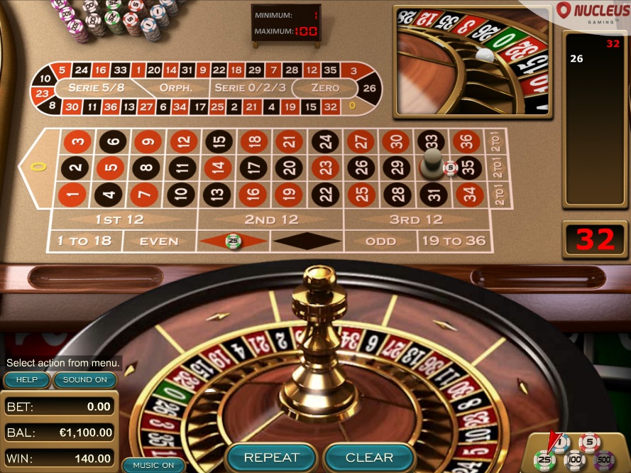 Nucleus 提供三種輪盤,兩種單零輪盤和一種雙零輪盤。我建議只玩單零輪盤。