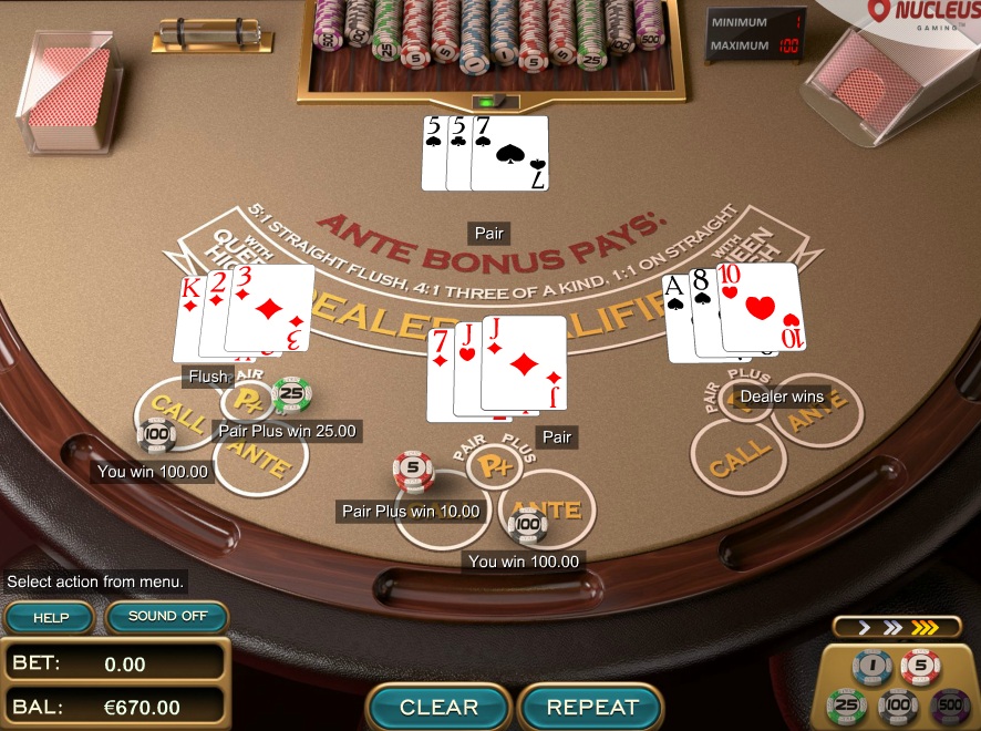 遵循標準的牌九撲克規則。我一直很喜歡線上賭場有莊家按鈕,或至少可以整理牌型,但 Nucleus 卻沒有。至少這樣你就不會犯規。