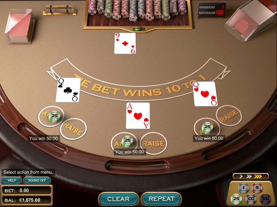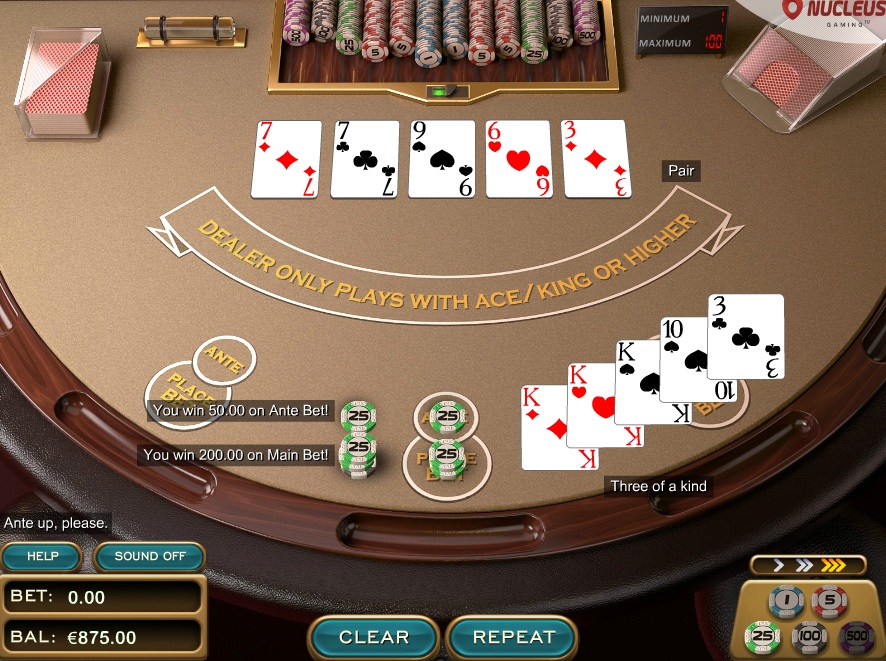 Nucleus 將其三張撲克遊戲稱為Triple Edge Poker 。底注紅利 (Ante Bonus) 的賠率表為 1-4-5,賭場優勢為 3.37%。對子加 (Pairplus) 的賠率表為 1-4-6-30-40,賭場優勢為 2.32%。