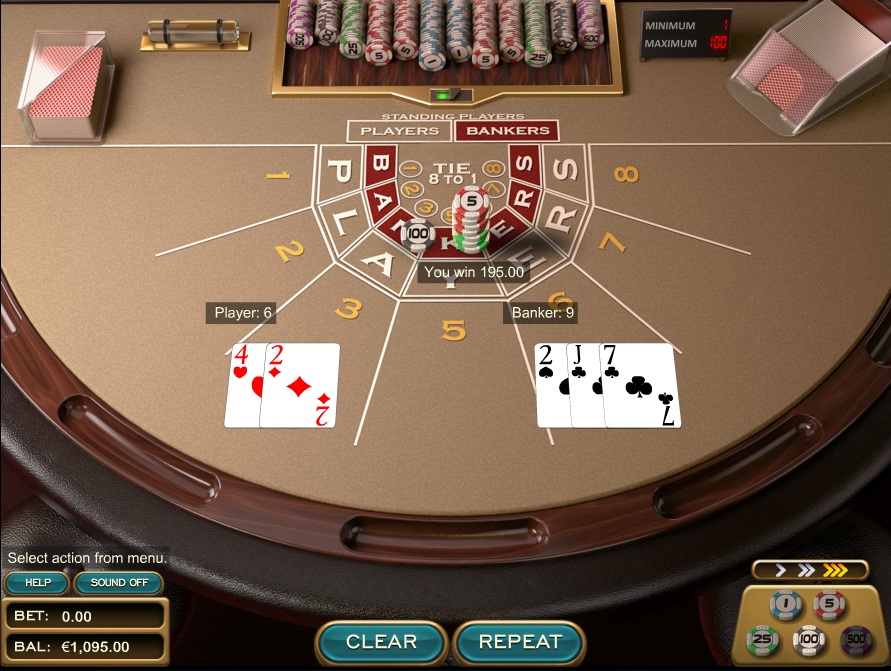 Nucleus 提供簡單的百家樂遊戲,主要有三種賭注——玩家、莊家和平局。