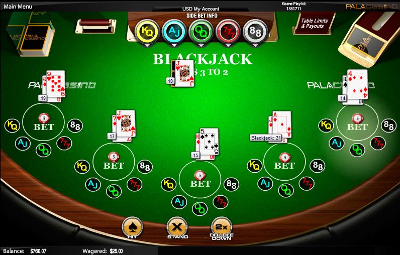 有四種二十一點遊戲可供選擇。賠率最高的是「邊注」二十一點遊戲,它不僅擁有最佳規則,還有五種不同的邊注。我不建議在任何遊戲中進行邊注,但如果您想了解更多關於Pala二十一點邊注的信息,以下是一些相關頁面的連結: