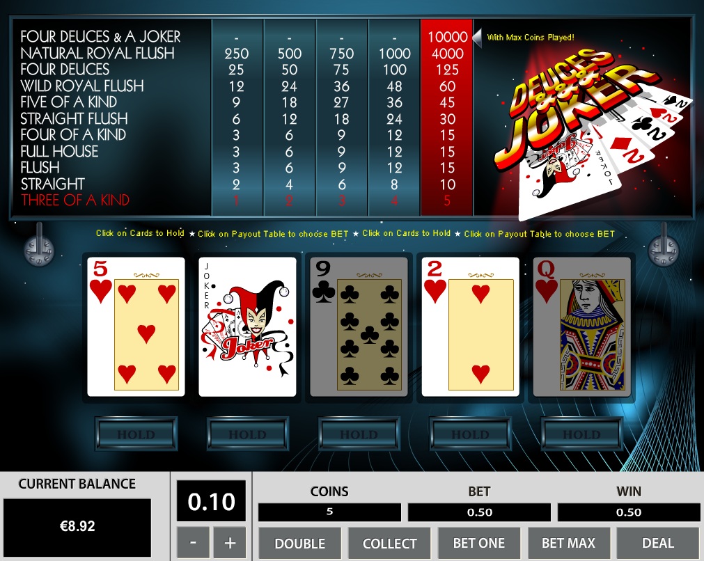 | Deuces and Joker Wild | 99.07% | 否 | 否 | 1-2-3-3-3-6-9-12-25-800-2000 | 否 |