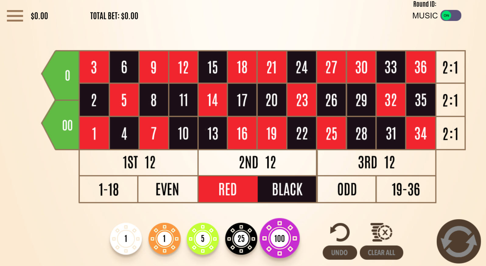 PureRNG 提供兩種常見的輪盤版本,如下所示: