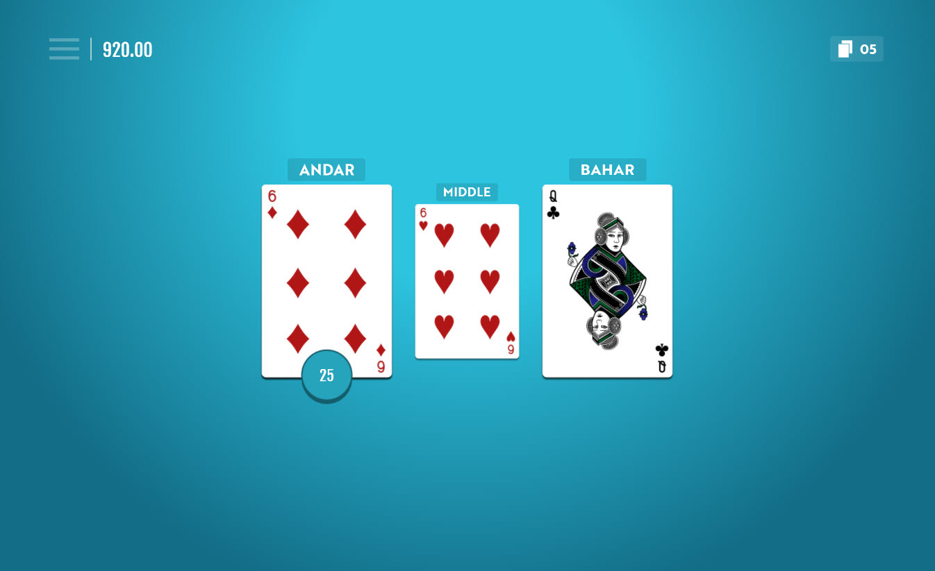 - Andar — 賠率為 1.9。賭場優勢為 2.15%。