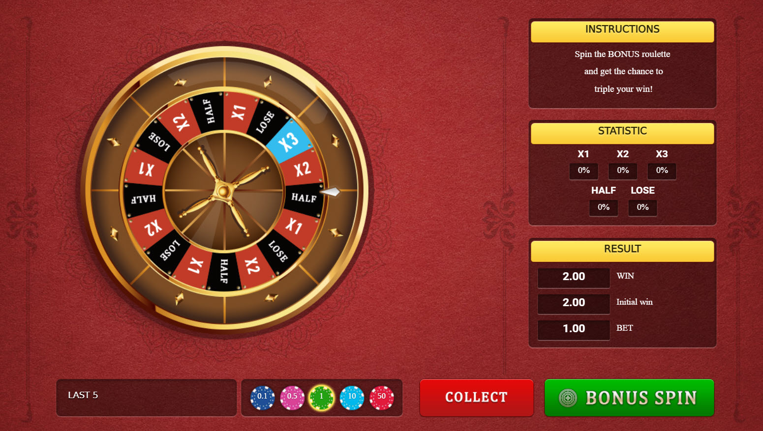 該網站還有一款名為「獎金輪盤」的遊戲,玩家可以在獎金輪盤上累積獎金。下表顯示了獎金輪盤上的投注部分。右下角的單元格顯示獎金輪盤的平均回報率為 100%。既然您在賭博,何不抓住這個沒有賭場優勢的機會呢?