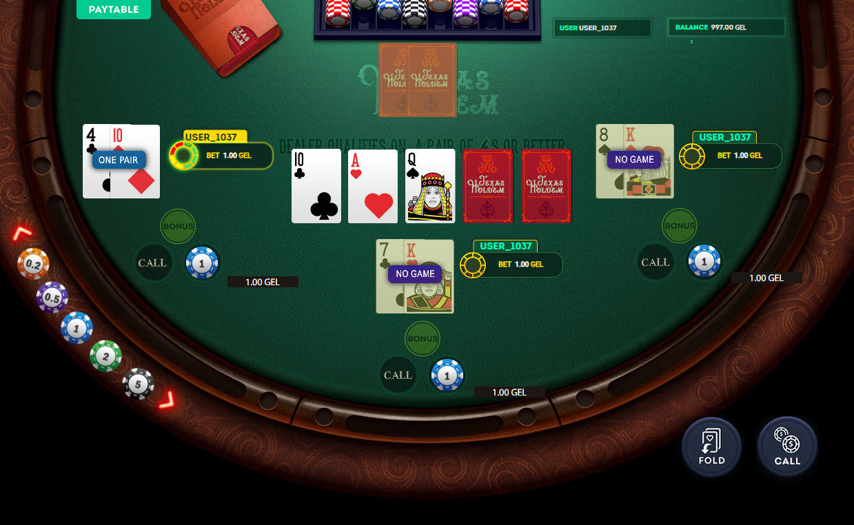 SmartSoft 將其賭場德州撲克遊戲稱為「德州撲克」。他們遵循慷慨的 100-20-10-3-2-1 賠率表,賭場優勢為 0.35%。在附加投注方面,他們遵循 100-25-25-25-7-7-7-7 賠率表,賭場優勢為 6.40%。