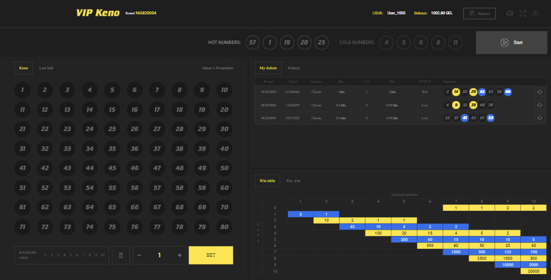 在我看來,經典基諾和個人基諾似乎是一樣的。它們都遵循以下賠率表。還有一款名為「俄羅斯基諾」的遊戲,但我玩不了。