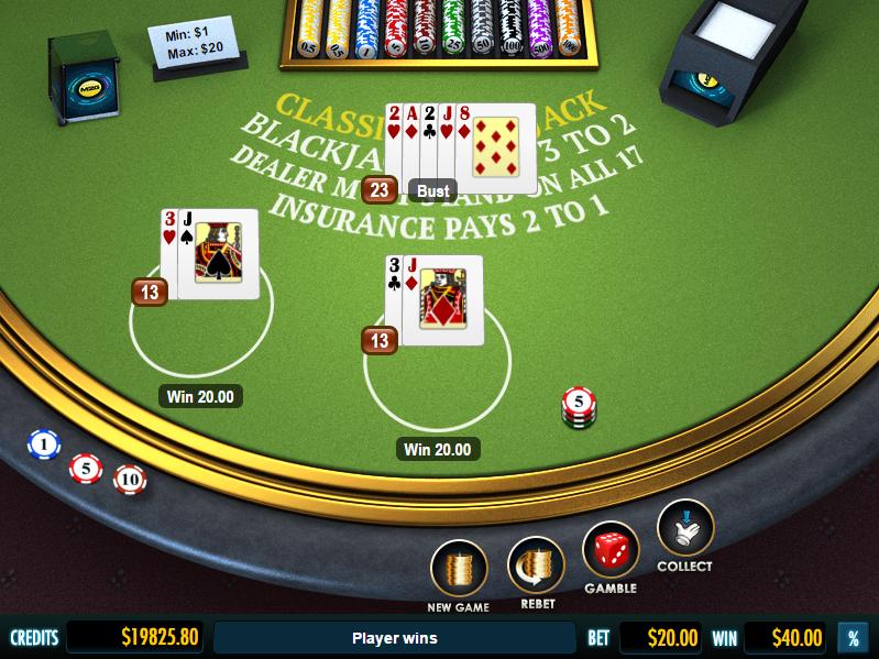 - 經典二十一點:1 至 20 美元。