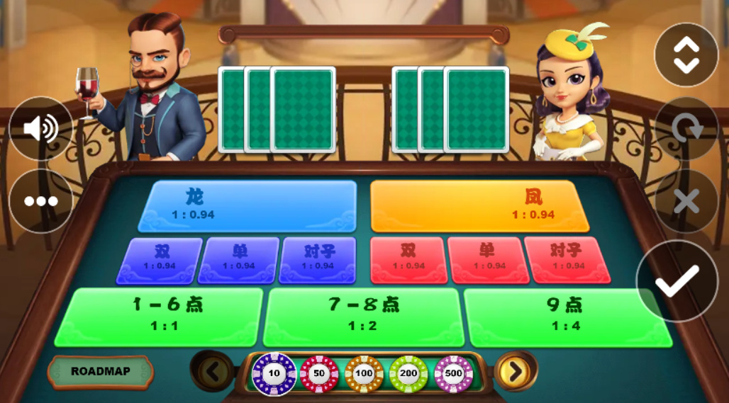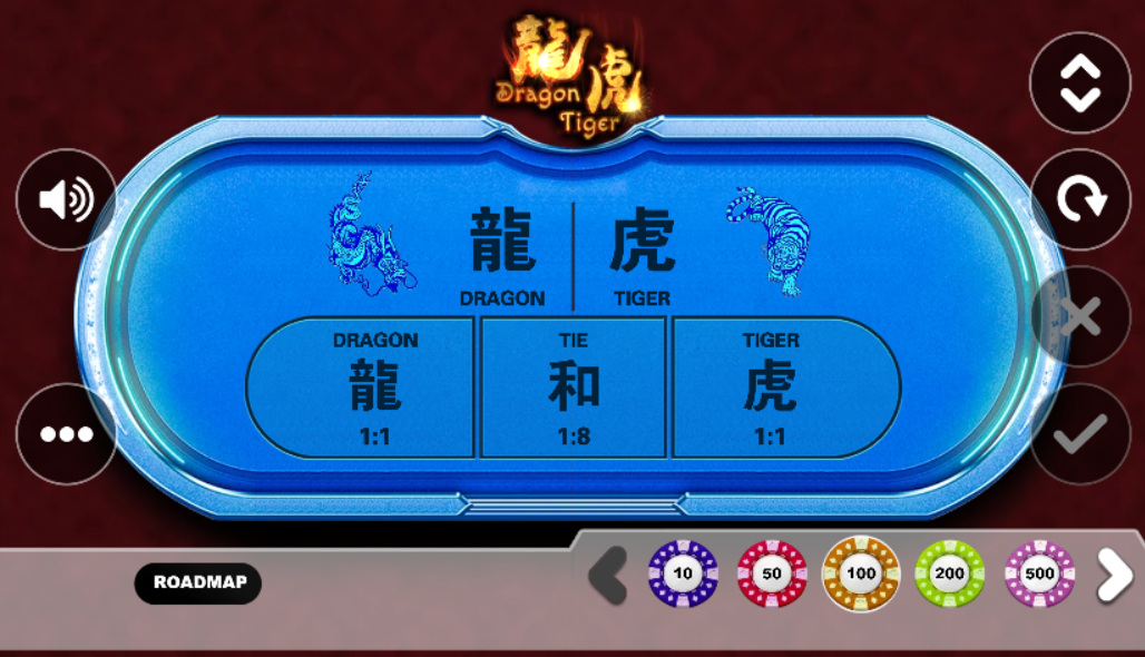 龍虎遊戲很簡單,只用兩張牌,玩家選擇哪張牌比較大(龍或虎)或平手。遊戲使用八副牌。平手的賠率通常為8比1。以下是每種投注的賭場優勢。