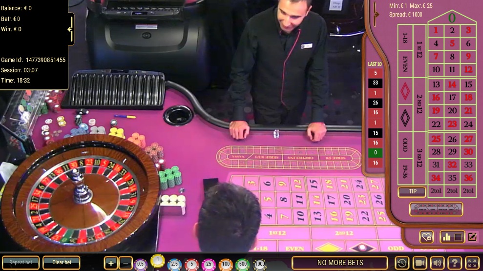 雖然有幾種輪盤可供選擇,但它們似乎都是單零,賭場優勢為2.70%。有些輪盤明顯是真賭場的,有鏡頭前的人在玩,有些則像是在私人工作室玩的。